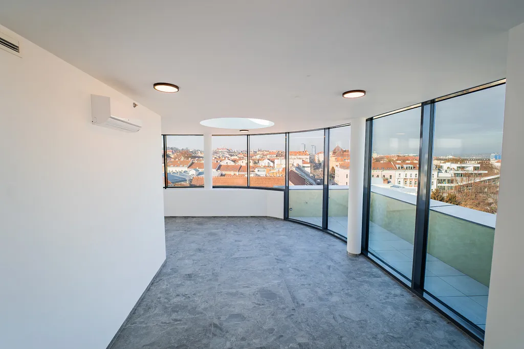 Byt 9.01 má 139,2 m², a má panoramatickou orientaci. Součástí je částečně zelená terase o výměře 38,8 m² i sklepní kóje.