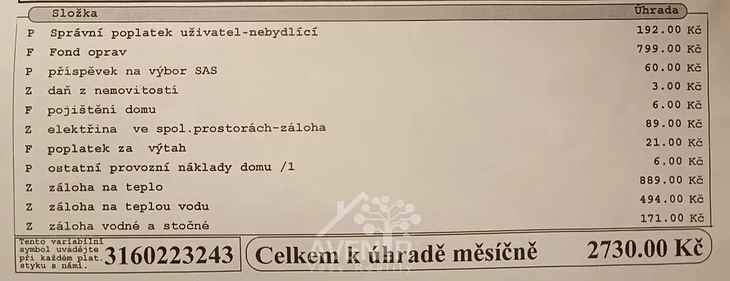 Na jednotce neváznou žádné dluhy a anuita je na tomto objektu doplacena. Družstvo bytu je SBD Špičák. Služby na jednu osobu činí 2.730,- Kč měsíčně, viz. fotogalerie.