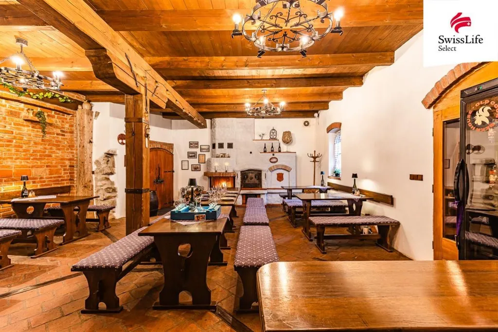 Součástí objektu je vinárna s krbem, která přirozeně slouží jako centrum setkávání hostů. Při provozu využijete také udírnu a rožeň, jež rozšiřují gastronomické možnosti. Za domem se nachází menší zahrádka, aktuálně využívaná k pěstování bylinek, kterou lze zapojit do provozu nebo ponechat jako klidový prvek zázemí. K dispozici jsou také dvě úschovny kol, možnost dobíjení elektrokol a letní venkovní posezení ve stínu stromů přímo před sklepem.