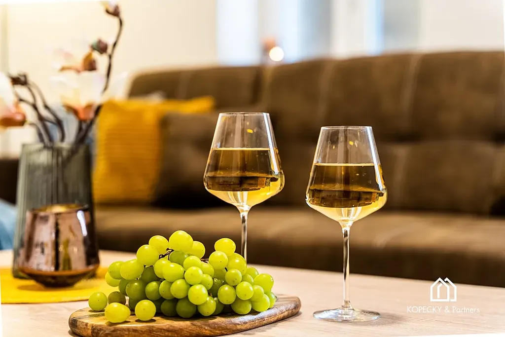 Dispozice bytu zahrnuje vstupní chodbu, samostatnou kuchyni, koupelnu, toaletu a technickou místnost s umístěním elektrokotle a bojleru. Dále jsou zde tři pokoje, přičemž dva z nich jsou vzájemně průchozí. Největší z pokojů má přes 25 m² a slouží jako hlavní obytný prostor. V jeho centrální části je dostatek místa pro jídelní kout. Další dva pokoje mohou sloužit jako ložnice, dětský pokoj, pracovna nebo pokoj pro hosty.