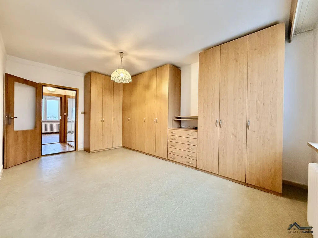 Bytové jádro je obloženo obklady, WC je samostatné a upravené. V celém bytě jsou vyměněny interiérové dveře. K dispozici jsou vestavěné skříně a prostorná šatna skrytá za zrcadlovou stěnou, která poskytuje dostatek úložného prostoru. Kuchyň je vybavena kuchyňskou linkou se sporákem a myčkou nádobí.