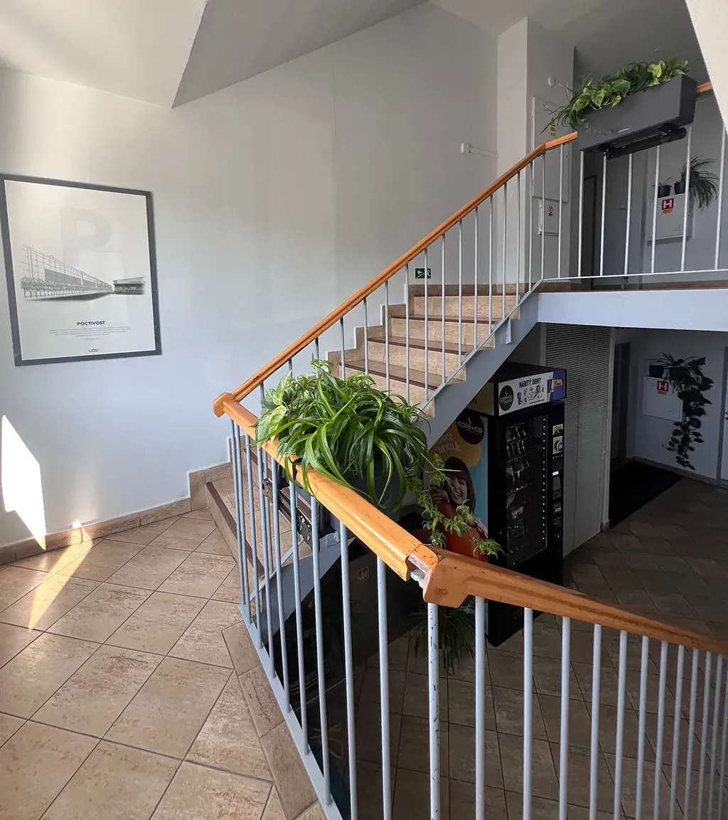K pronájmu kanceláře nabízíme bezplatné parkování osobníc vozidel před areálem nebo na vyhrazeném, zpoplatněném parkovišti uvnitř areálu. Uvedené ceny jsou bez služeb a energií.