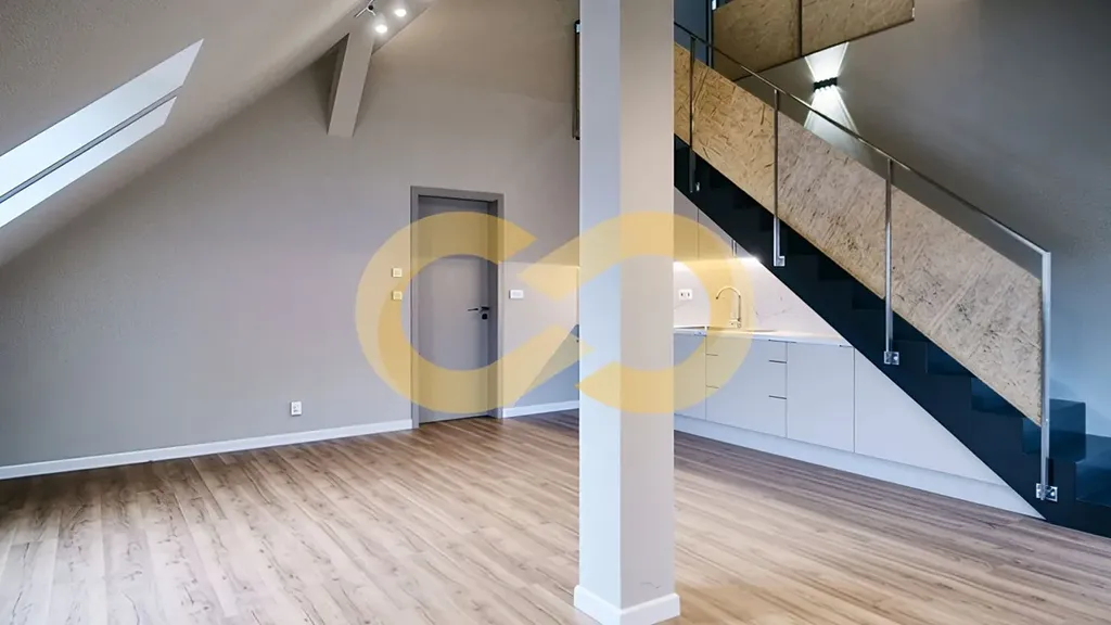 Mezonetový byt 3+kk s výměrou 150 m² vás okouzlí vysokými stropy s trámy a chytře využitým prostorem. Ve spodní části najdete obývák s kuchyňskou linkou šikovně umístěnou pod schodištěm. Dále je tu koupelna se sprchovým koutem a místem na pračku, samostatné WC a první ložnice. Po schodech vystoupáte do ložnice o velikosti skoro 26 m² se šatnou a vlastní koupelnou s vanou a WC.