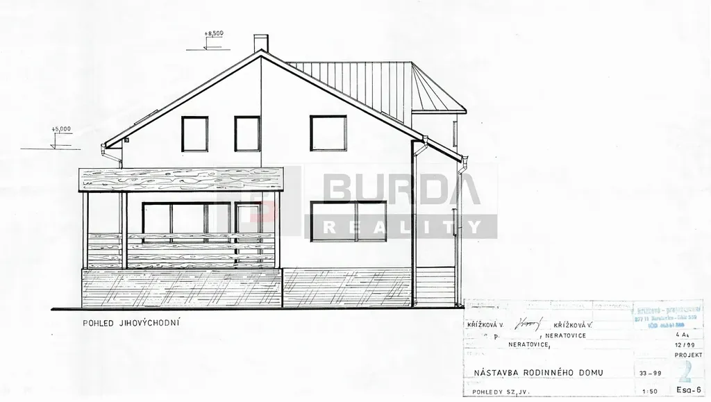 Dům je k celkové rekonstrukci a nabízí možnost přestavby na moderní futuristickou vilu, ale i na klasický dům se sedlovou střechou, s případnou nástavbou dalšího podlaží, s použitím současných materiálů.