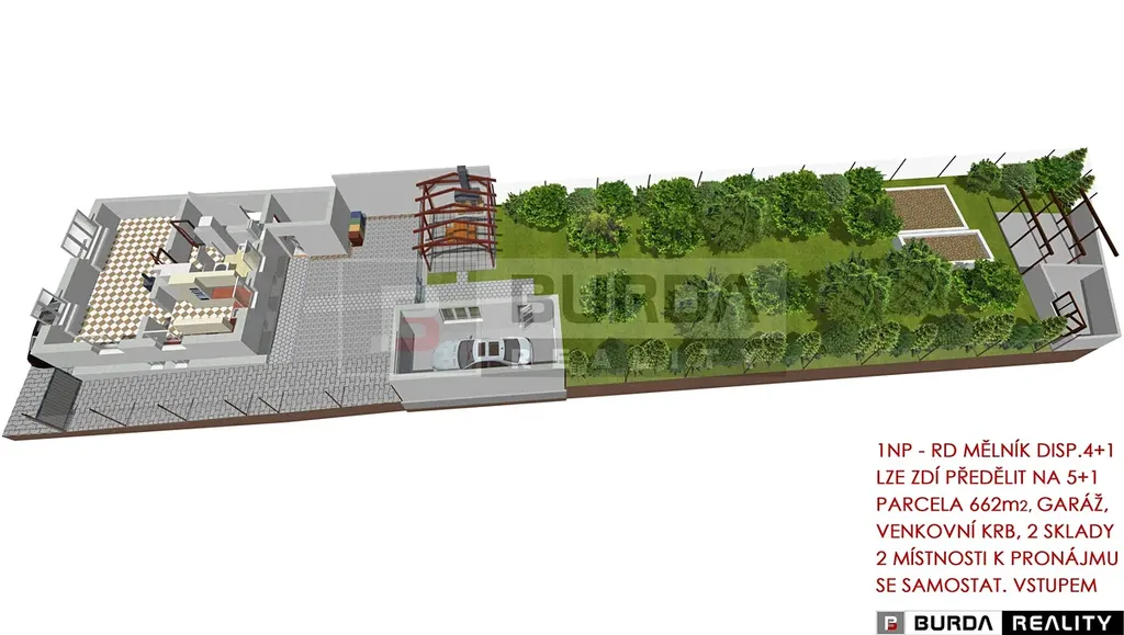 Exkluzivně Vám nabízíme k prodeji rodinný dům 4+1 se zahradou, s částečně podsklepenou garáží, s venkovním přístřeškem s krbem a se skladem nářadí s přilehlým dřevníkem v klidné části města Mělník.