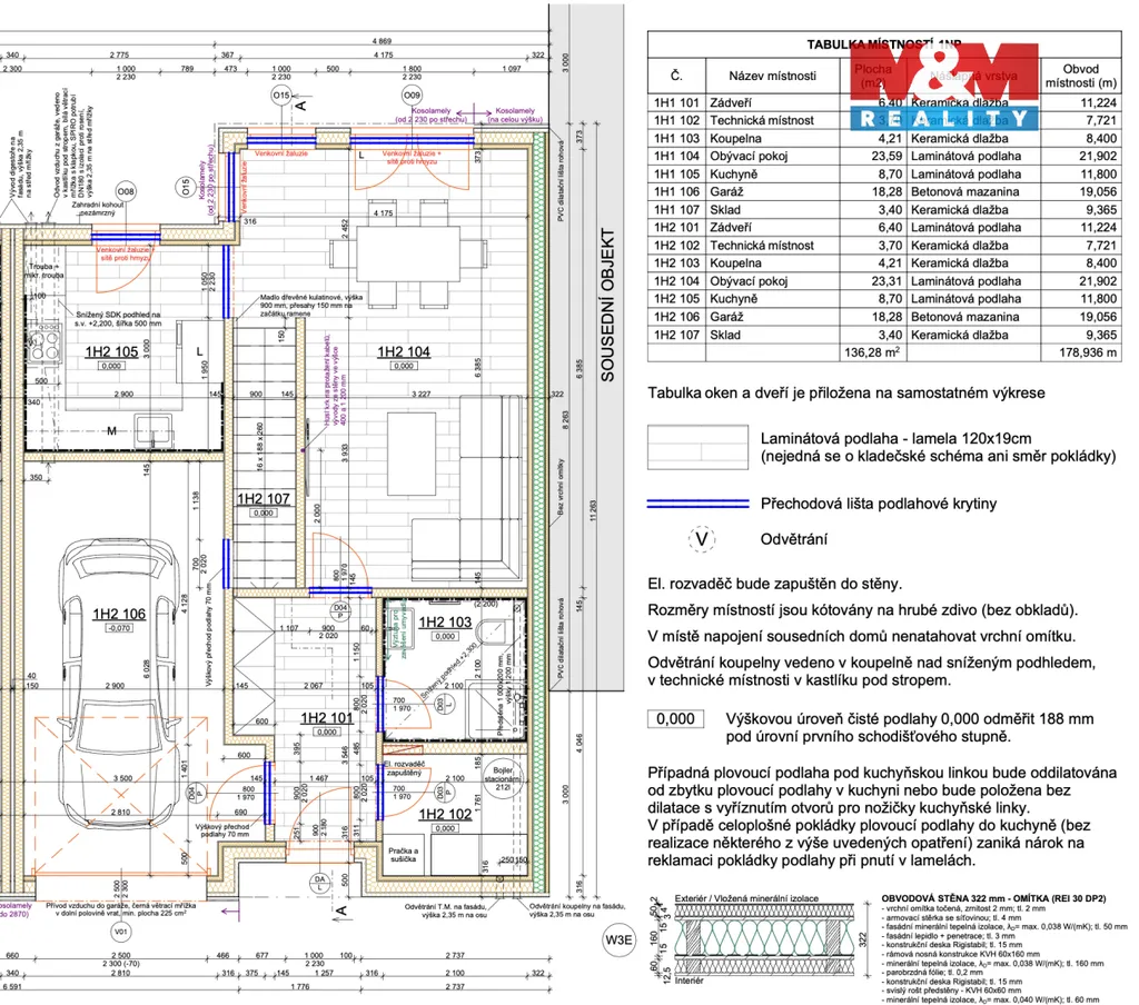 Dům je navržen s důrazem na prostor a každodenní komfort. Najdete zde vše, co potřebujete - zahradu s posezením pod pergolou, bazén se slanou vodu, fotovoltaickou elektrárnu pro nižší provozní náklady a garáž. Nad rámec standardu je podlahové vytápění, venkovní žaluzie a sítě proti hmyzu. K dispozici je také pochozí půda.