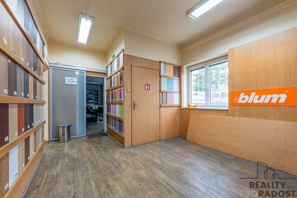 Hlavní budova má celkovou výměru cca 741 m² a zahrnuje výrobní halu o ploše cca 450 m² a dále kanceláře a vzorkovou prodejnu o ploše cca 290 m².
