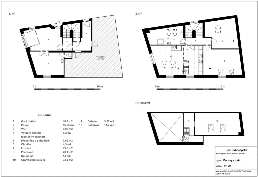 Dům se sestává ze 3 jednotek, z nichž předmětem prodeje jsou 2 jednotky v domě o velikosti 156 m2, které mohou být užívány odděleně nebo společně.