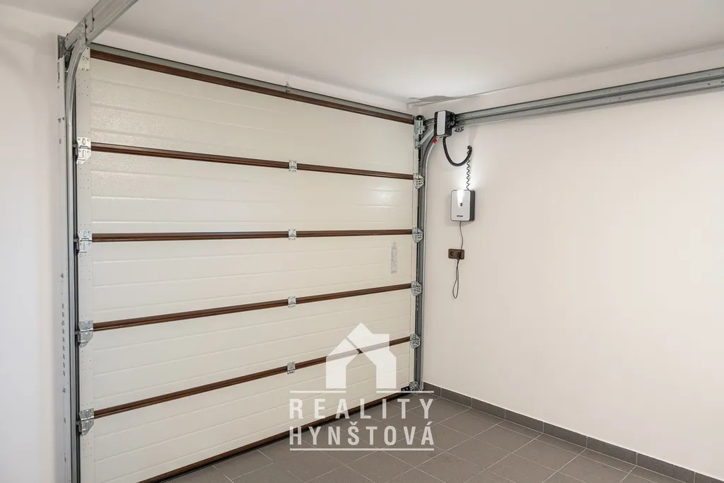 Pohodlný vjezd autem do garáže zajistí elektrická vjezdová brána a garážová vrata s dálkovým ovládáním. A určitě oceníte další parkovací místo na nájezdové ploše před domem.