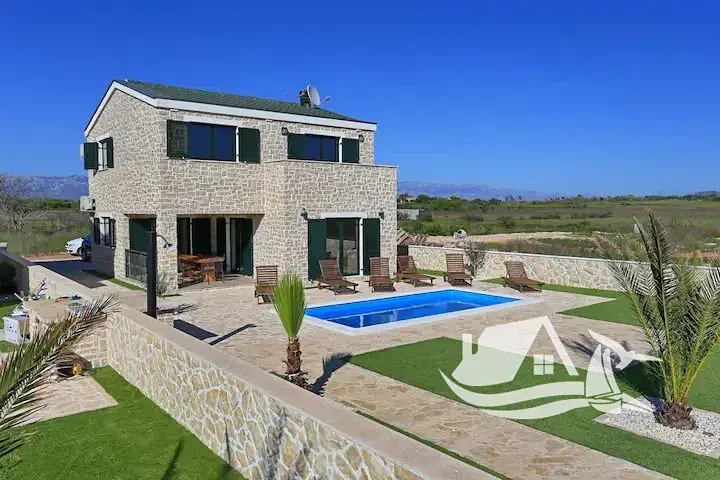 Nabízíme k prodeji plně zařízený dvoupodlažní dům s bazénem v Privlaka, pouhých 250 metrů od pláže. Tento moderní dům o celkové ploše 155 m² je situován na pozemku o rozloze 450 m² a byl postaven v roce 2016.