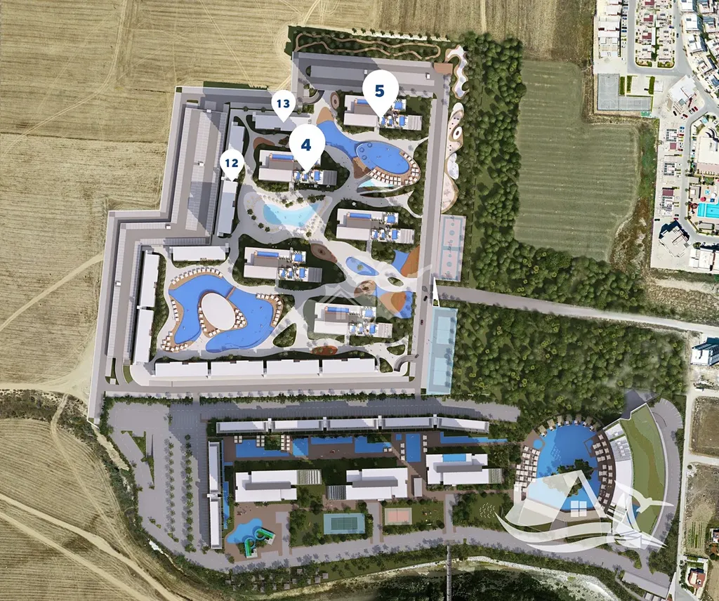 Rezidenční komplex nabízí širokou škálu vybavení pro vaše pohodlí a zábavu. Najdete zde 20 bazénů, restaurace, pečlivě udržovanou zeleň i 24hodinovou bezpečnostní službu. Nechybí ani recepce pro veškerou asistenci, kterou byste mohli potřebovat.