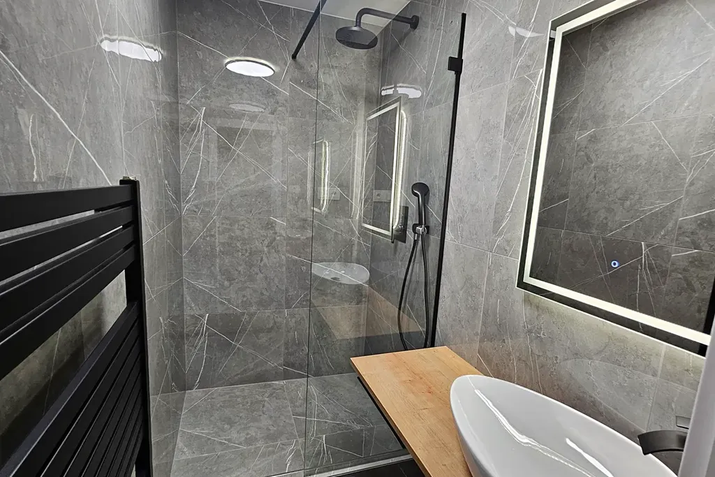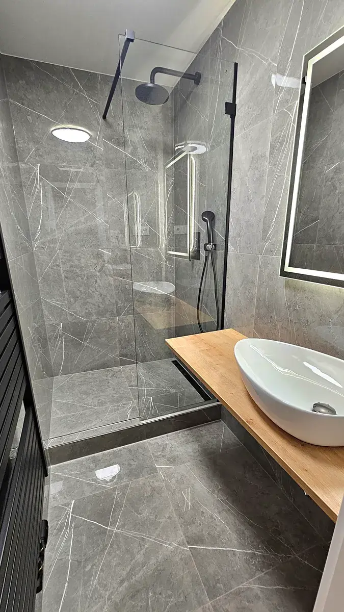 Byt je po právě dokončené luxusní rekonstrukci, pokoj má dřevěné podlahy, koupelna se sprch. koutem má přípravu na pračku, samostatné WC, vlastní topení zajišťuje elektrokotel, koncem ledna bude instalována kuchyňská linka na míru vč. spotřebičů dle vizualizace (v hodnotě 235.000.-Kč).