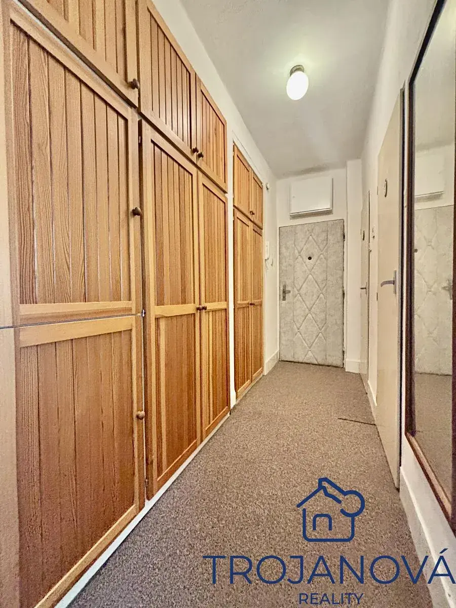 Byt prošel rekonstrukcí. Kuchyňská linka - sporák se sklokeramickou deskou, digestoř, obývací pokoj a ložnice. Koupelna se sprchovým koutem, WC samostatně, Na podlahách se nachází dlažba, koberce a PVC. K dispozici je lednice s mrazákem, pračka, vestavěné skříně na chodbě.