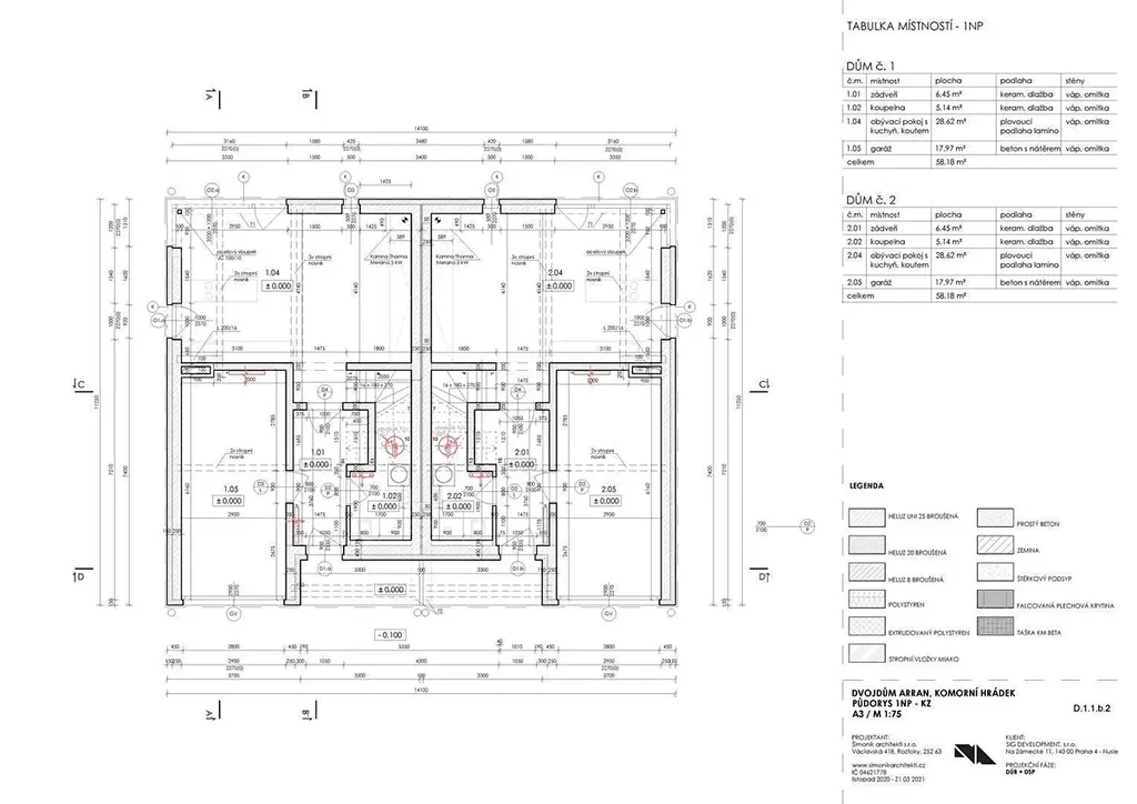 Dispozice 5+kk • Užitná plocha 163 m² • Podlahová plocha 143 m² • Obytná plocha 105 m² • Terasa 20 m² • Pozemek 503 m² • 2 parkovací místa.