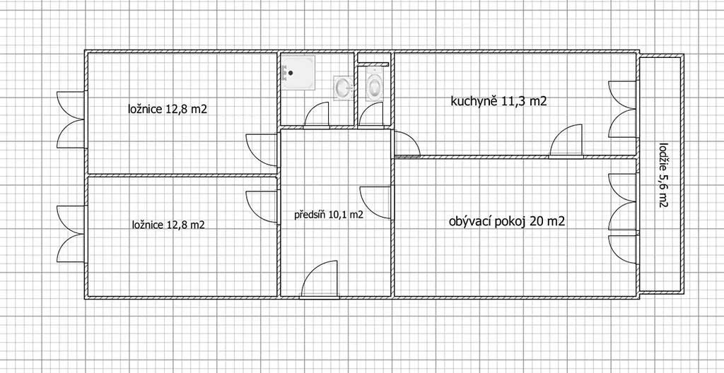 Byt je v původním stavu určený k rekonstrukci podle vašich představ. Je v něm prostorná předsíň se skříněmi a vstupem do všech 4 místností, do koupelna a WC. Obývací pokoj má výměru 20 m2 a francouzské dveře na lodžii (5,6 m2) a je propojený s kuchyní o výměře 11,3 m2. Oba pokoje jsou orientované na západ. Dvě ložnice mají plochu 12.8 m2 a okna na východ do zeleně mezi domy. Bytové jádro je zděné a koupelna prošla nedávno rekonstrukcí. Okna v bytě jsou plastová a na podlahách je původní PVC. Byt je nyní vyklízen a bude postupně rekonstruován a jeho konečná cena bude záviset na stavu rekonstrukce. Uvedená cena je za vyklizený byt v původním stavu.