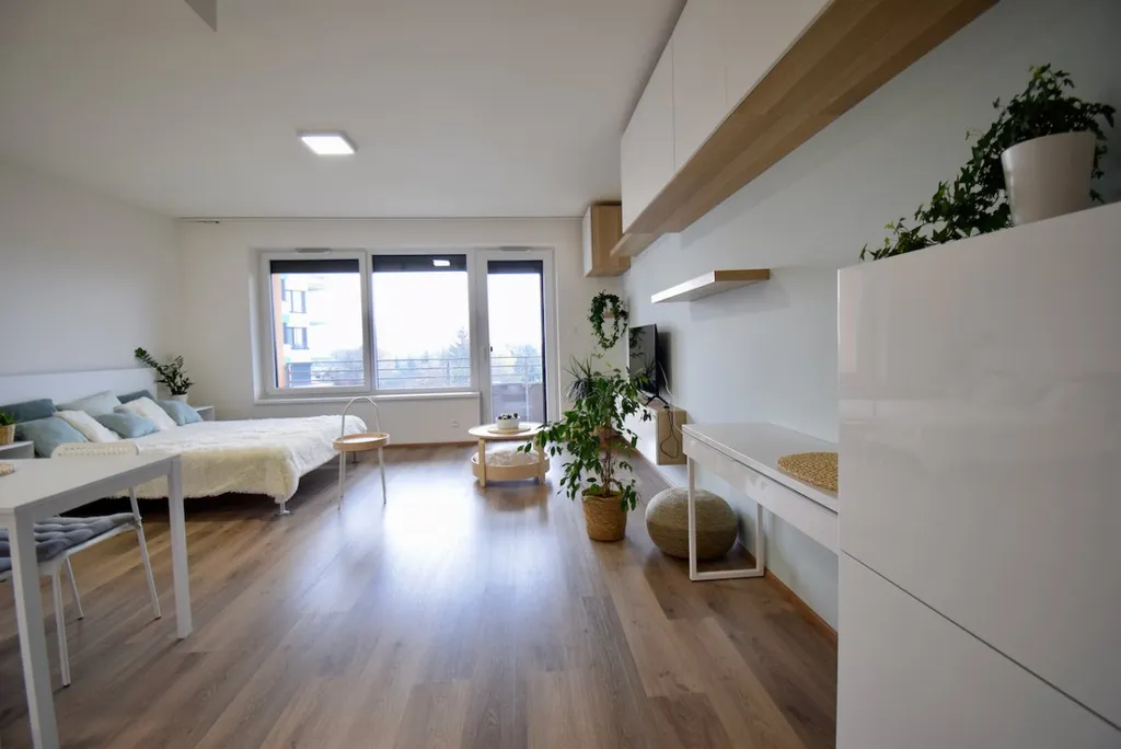K dlouhodobému podnájmu nabízíme krásný byt o dispozici 1+kk na ulici Slavonínská. Byt o celkové ploše 41 m2 se nachází ve 4. patře cihlové novostavby. K bytu náleží i prostorný balkón a garážové stání.