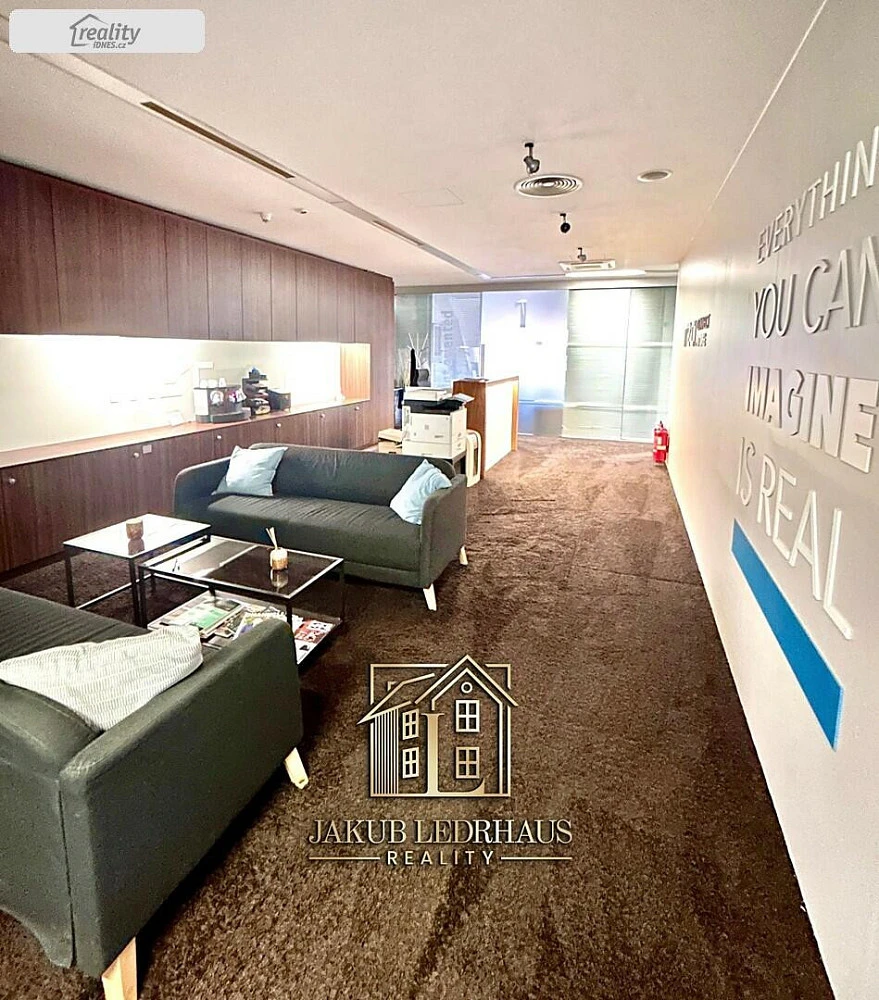Prostory zaujmou světlostí, moderním designem a privátní střešní terasou s výhledem na Prahu. Dispozice kombinuje open space, samostatné kanceláře, kuchyňku a sociální zázemí.
