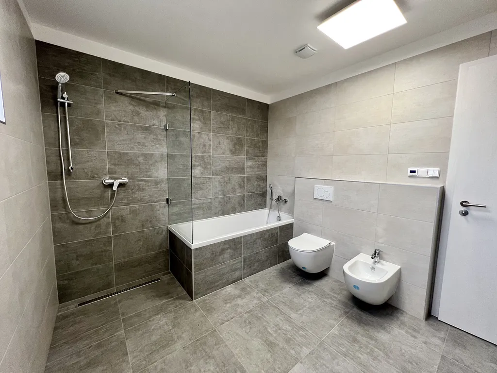 Mezi standardy patří velmi oblíbené plovoucí podlahy, schodiště s nerezovým zábradlím a obložené dřevem, obklady a dlažby od výrobce La Ceramica, plastová okna s izolačními trojskly a předokenními žaluziemi, dveře značky Sapeli v provedení CPL, možnost dobíjení vlastního elektromobilu. Vytápění a TUV je zajištěno plynovým kondenzačním kotlem se zásobníkem. Podlahové topení je v koupelně v patře. V zahradě je umístěna velkokapacitní akumulační nádrž na sběr dešťové vody, kterou můžete zavlažovat zahradu. Parkování je možné v garáži a na 2 venkovních stáních na pozemku. Zahrady jsou oploceny 2D plotovými panely s brankou.