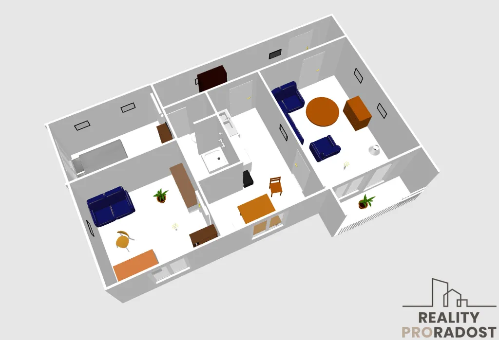 Tento byt představuje ideální volbu pro ty, kteří hledají bydlení v klidné lokalitě s občanskou dostupností- Autobusové nádraží-1min, Lidl-3min./800m/, ZŠ-400m.