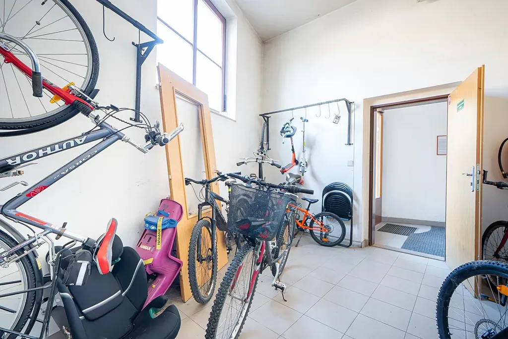 Velkým benefitem je možnost užívání společné zahrady ve vnitrobloku s bazénem a možnost přikoupení garáže přímo v bytovém domě.