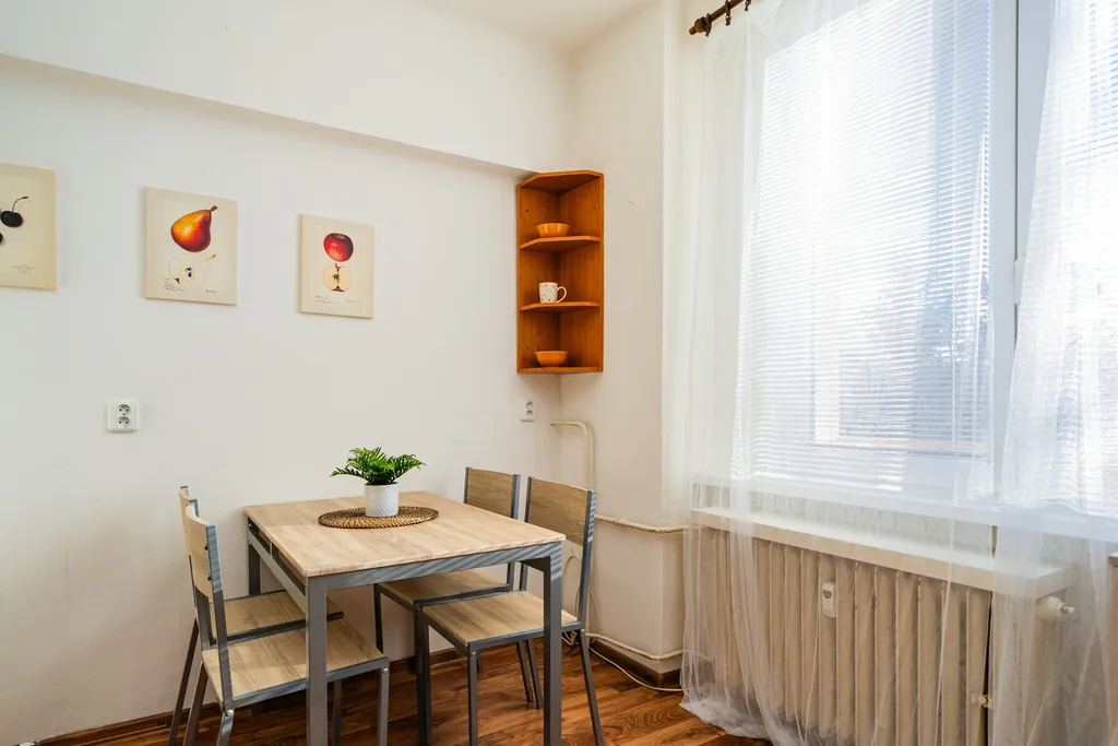Nabízíme Vám ke koupi byt 2+1, 60 m2, v činžovním domě situovaném v oblíbené městské části Vršovice, ulice Jakutská. Jedná se krásnou a klidnou ulici, která umožňuje pohodlné parkování, blízkost MHD i školy, ale především velmi příjemnou atmosféru. Byt je umístěný ve čtvrtém patře. V minulosti prošel byt rekonstrukcí a jeho obrovskou výhodou jsou velmi praktické dispozice a orientace oken na jih s výhledem do zeleně. K dispozici jsou dva prostorné pokoje a samostatná kuchyně. Ta je vybavena kuchyňskou linkou. Dále je zde komora, oddělená toaleta a koupelna se sprchovým koutem. Velmi praktická je vstupní chodba s velkorysým úložným prostorem. K bytu náleží sklep v suterénu domu.