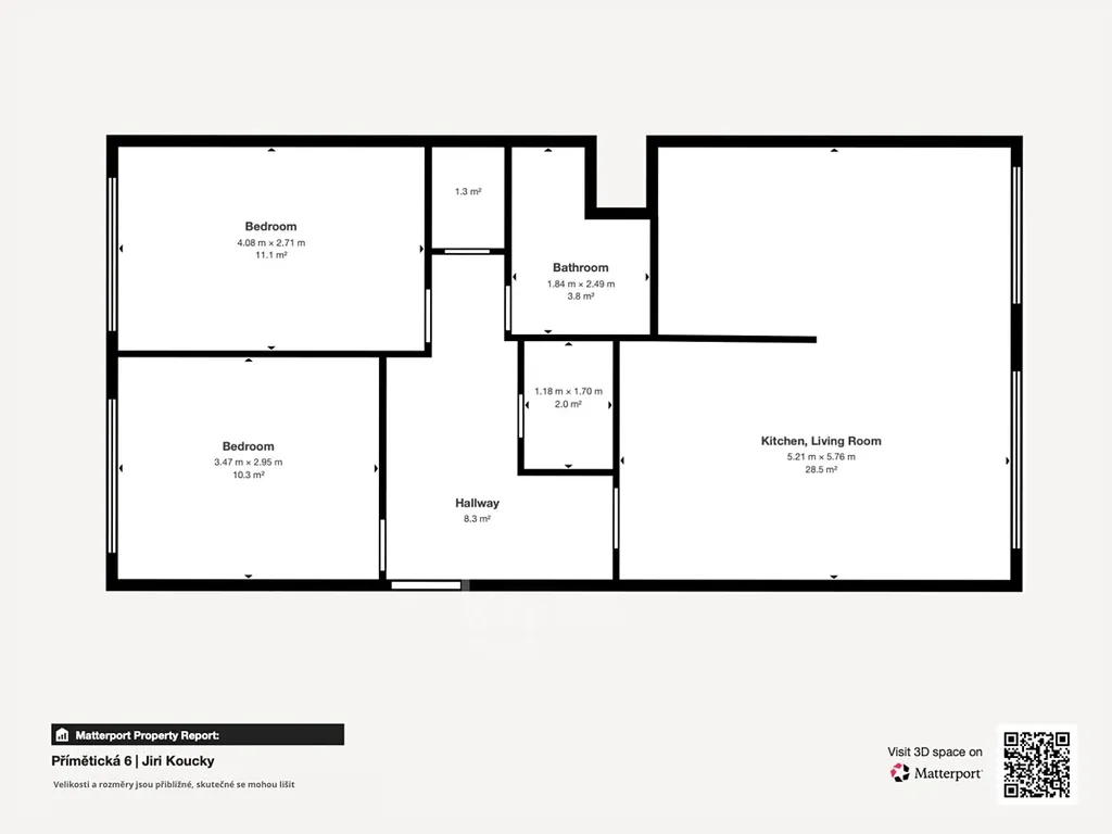 byt nemá balkon, ale díky praktické dispozici skvěle funguje pro pár, rodinu s jedním dítětem nebo jako 2+kk s pracovnou