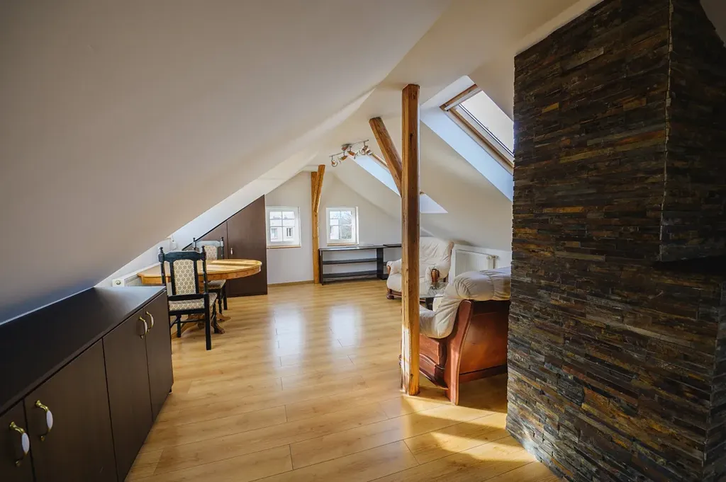 Nabízíme k pronájmu zařízený atypický podkrovní byt 1+kk v rodinném domě v atraktivní lokalitě v Liberci Nových Pavlovicích - ulice Křížkovského.