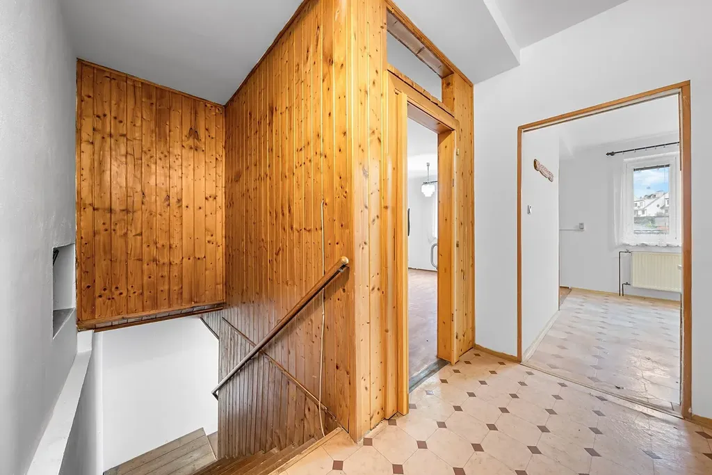 - v pokoji je malý úložný prostor, dle projektu podesta původně uvažovaného schodiště do podkroví