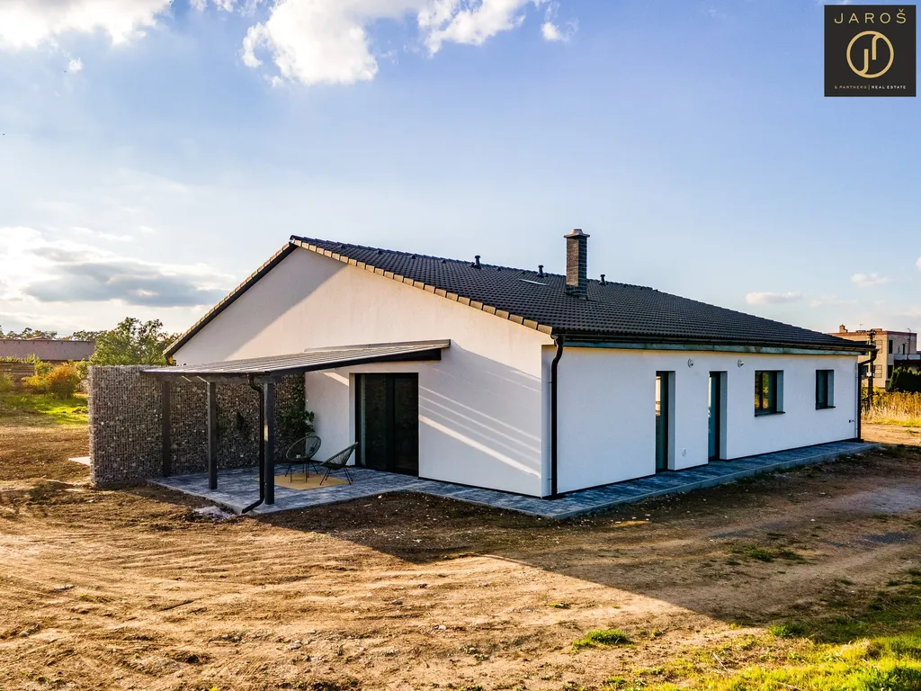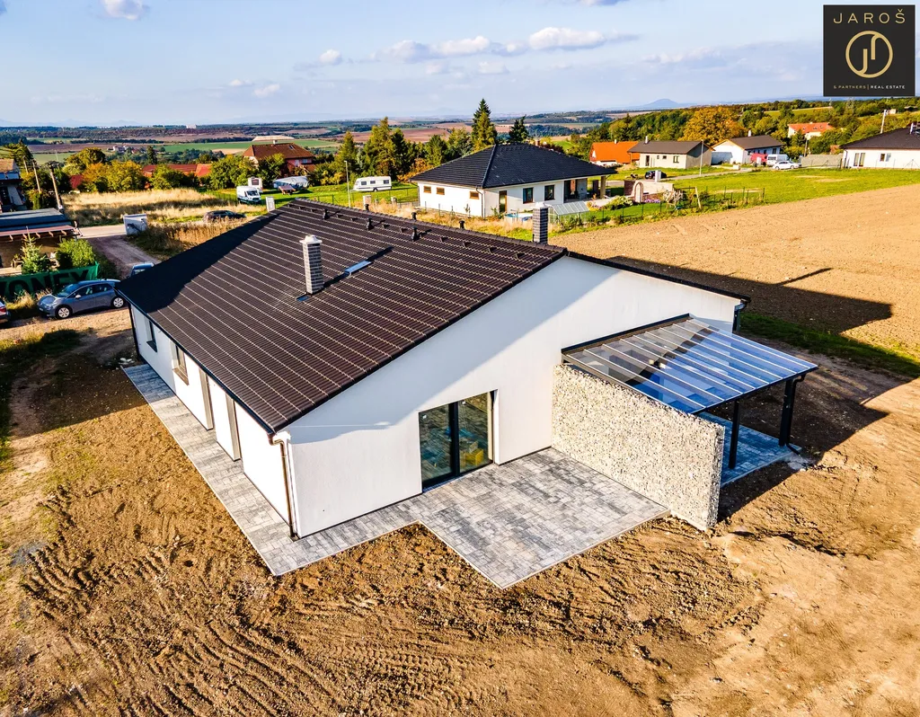 Prodej moderní novostavby bungalovu 4+kk o užitné ploše 126 m² na pozemku o velikosti 517 m² v klidné obci Pchery, okres Kladno.
