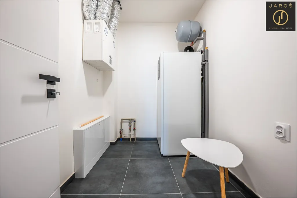 Dům je napojen na obecní vodovod, kanalizaci a elektřinu 220 V. Komfort zajišťuje tepelné čerpadlo s podlahovým vytápěním a rekuperační systém pro úsporné bydlení. Samozřejmostí je také příprava na předokenní žaluzie, fotovoltaickou elektrárnu a nabíječku pro elektromobil. K dispozici jsou dvě parkovací stání přímo u domu.