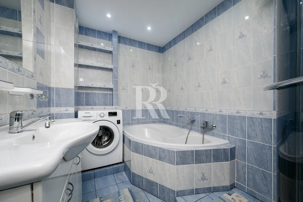 Velmi pěkná je koupelna, která je vybavena jak sprchovým koutem, tak i rohovou vanou. Jistě uvítáte samostatné WC.