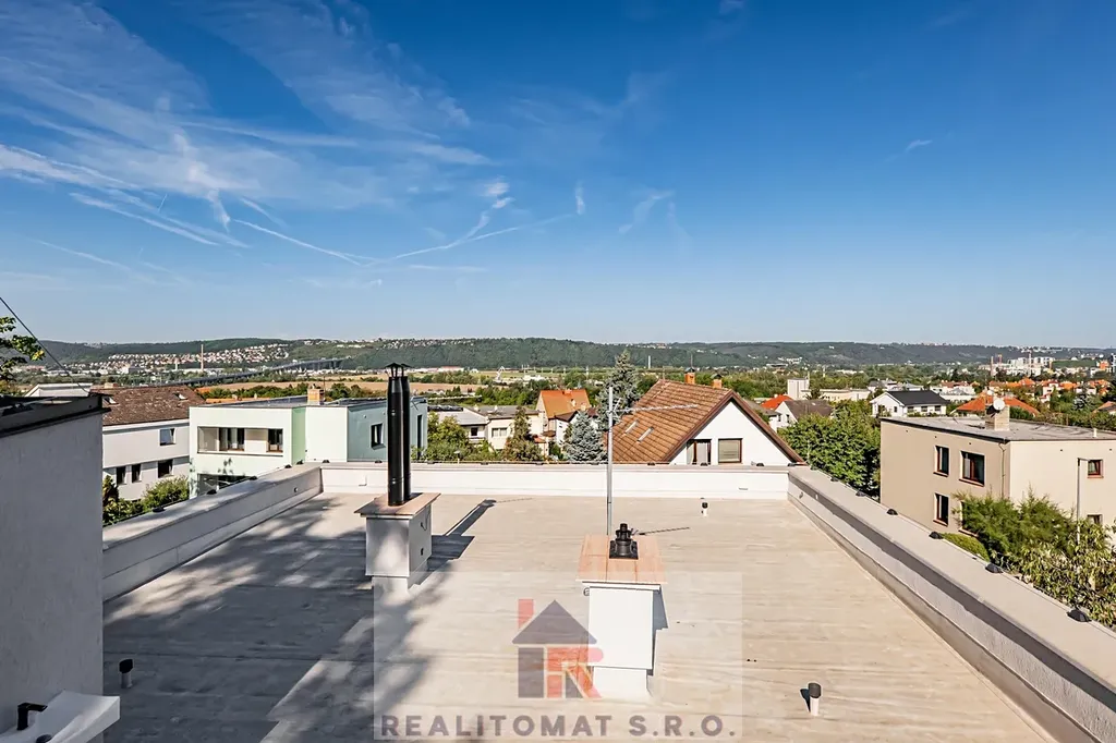Na střeše rezidence jsou připravené terasy pro instalaci vířivek a saun. V zadní části domu je zastřešená pergola s přípravou na kuchyňskou linku.