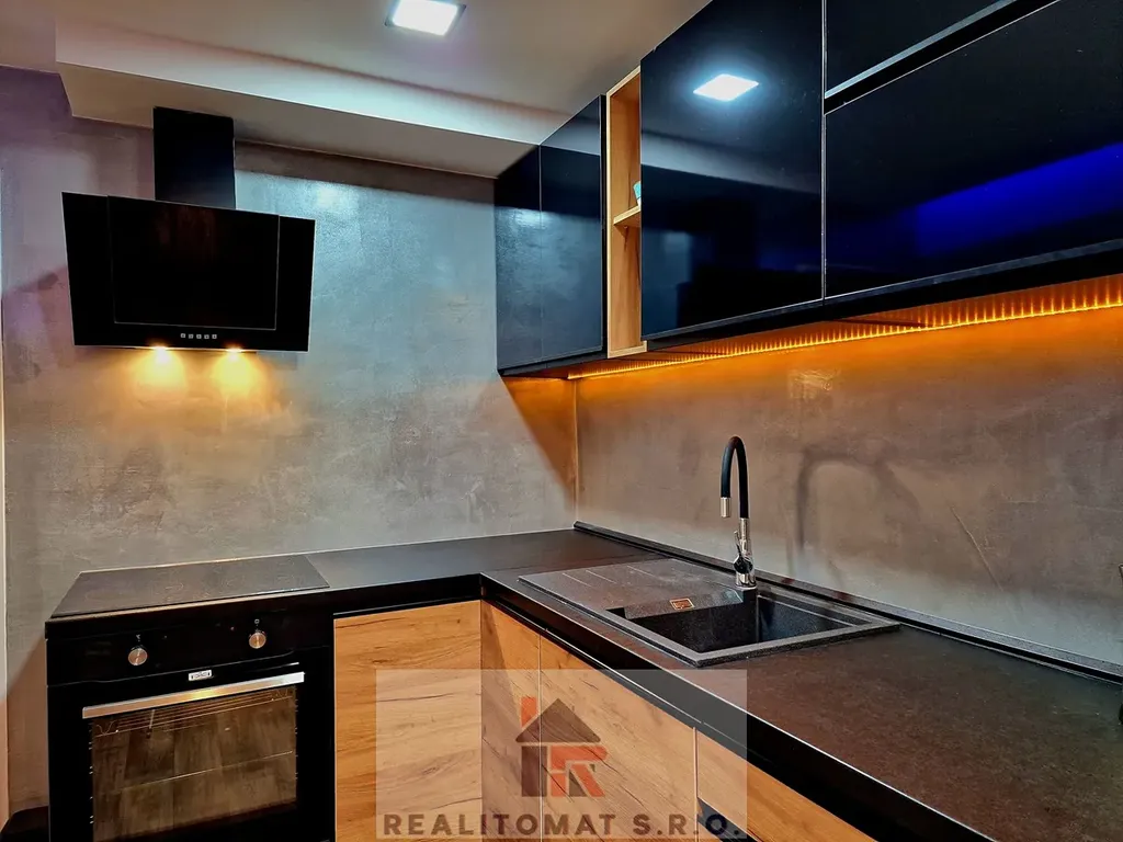 Dvě samostatné ložnice a obývací pokoj s možností rozložení pohovky na postel - třetí ložnice. Ambientní osvětlení a podhledy. Nízké měsíční poplatky.
