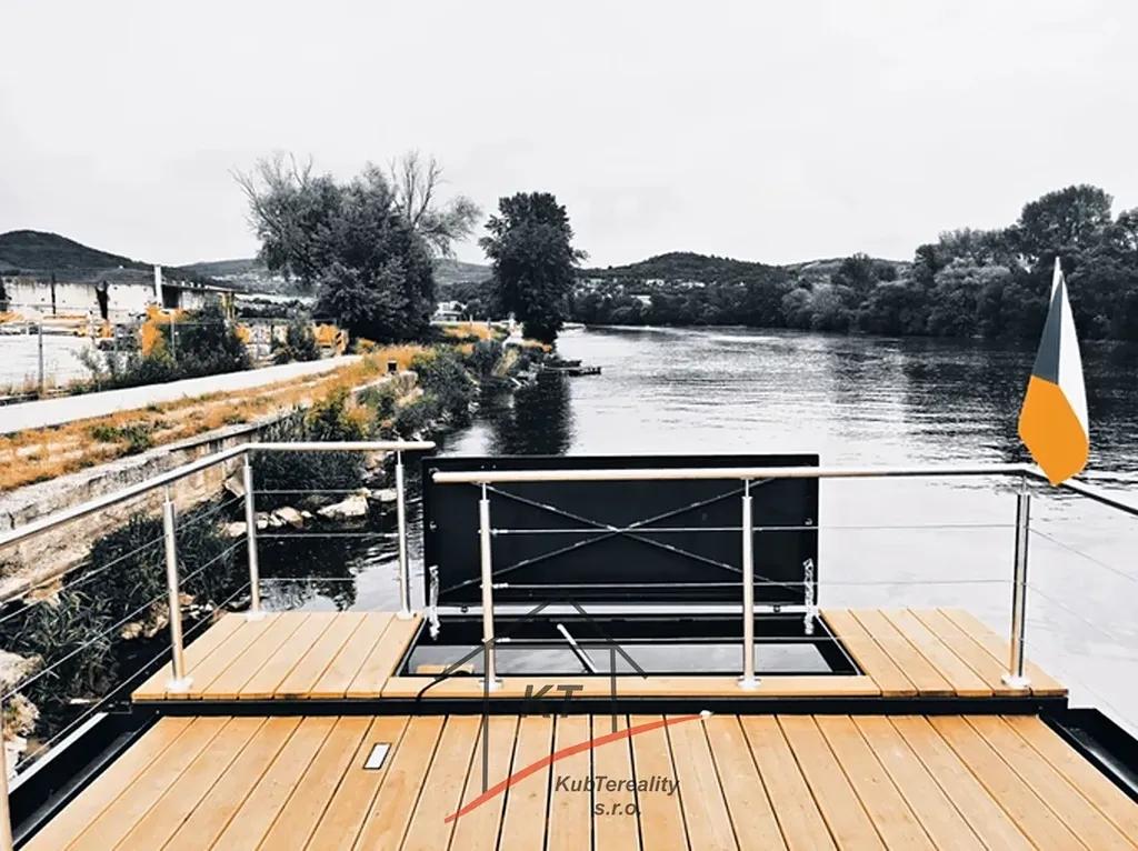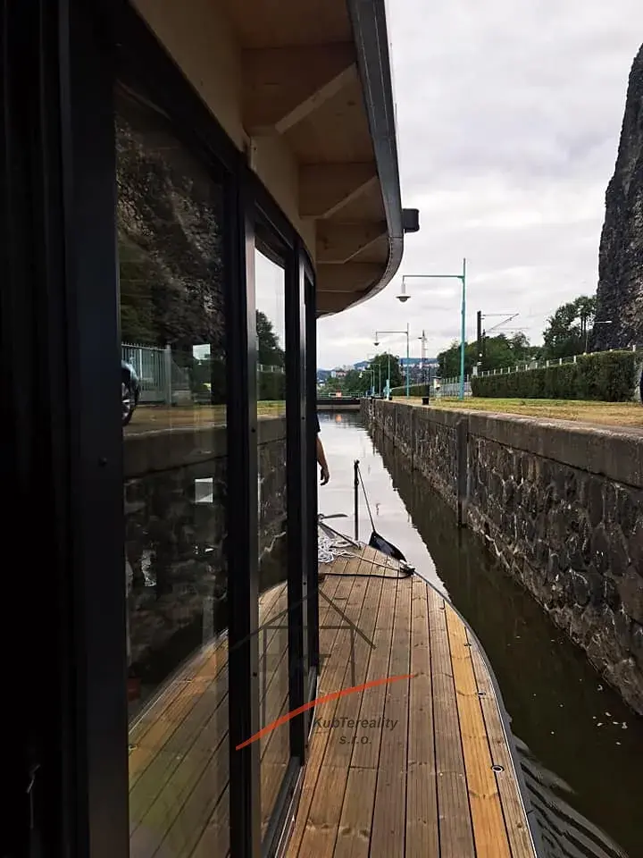 Nabízíme vám kompletně zařízený Houseboat o výměře 140 m2, který poskytuje pocit bydlení na vodě pro rekreační účely. Výroba probíhá v loděnici pod dohledem mezinárodně uznávaných kontrolních institucí (Lloyd's Register of Shipping, Germanische Lloyd a Bureau Veritas). Ocelové části jsou buď z nerezové oceli AISI316, nebo žárově pozinkované oceli. Stavby jsou navrženy v souladu s místními povětrnostními, vodními a zimními vlivy. Nejprve je stavba postavena ve výrobní hale Loděnice Barkmet a pak následně dopravena do místa kotviště. Základní výbava plovoucího domu obsahuje hlavní motor (Allpa, Vetus), dokormidlovací zařízení, kotva a kotevní systémy (dalby), nádrže - pitná voda, palivová a fekální nádrž a balastní nádrže (vyvážení trupu). Plovoucí dům je vybaven nejnovějšími technologiemi pro zajištění energetické účinnosti. Inteligentní vybavení systému pro úsporu energie a technologií umožňuje dosáhnout až LEED hodnocení. Energeticky/efektivní izolace a okna s trojsklem jsou standardní řešení. Dům je vybaven slunečními kolektory, které vyrábí teplou vodu pro domácnost, ve slunném období nabízí velmi nízkou spotřebou energie. O vytápění domu se vám postarají ekonomické sálavé infra panely s nastavitelným termostatem. Všechny tyto systémy a stavební materiály pomáhají šetřit Vaše peníze i životní prostředí v dlouhodobém horizontu. Rozměry - délka - 17m, šířka- 8,2m (ocel, povrchová úprava lodní barvou HEMPL). Technické parametry a vybavení: naftový motor Solé Diesel Allpa 35 HP, Elektro 220W, přední dokormidlovací zařízení, kotevní elektrický naviják, WC s lodním panelem (lodní fekální nádrž), sprcha, boiler, cisterna na vodu 1000litrů (užitková voda a odpadní), balastní nádrže (vyvážení trupu)Vybavení - lednice, sporák indukční, mikrovlnka, alarmový systém střežení, moderní led osvětlení, elektrické vyhřívané podlahy+ vybasto (diesel. horko-vzdušní topení). Houseboat není závislý na elektro - břehové přípojce kvůli solárním panelům - velmi ekonomická spotřeba- funkčnost pří úplném vypnutí elektřiny (alarm zařízení, lednice, boiler, osvětlení ). Energeticky/efektivní izolace a okna s trojsklem jsou standardní řešení. Dům vybaven slunečními kolektory, které vyrábí teplotu vody pro domácnost, ve slunném období nabízí velmi nízkou spotřebu energie. O vytápění domu se vám postarají ekonomické sálavé infra panely s nastavitelným termostatem. Všechny tyto systémy a stavební materiály pomáhají šetřit Vaše peníze i životní prostředí v dlouhodobém horizontu. 4 místa na spaní, palubní terasa a patrová terasa s další možnosti využiti - vířivka, terasa na opalování, grilování. Při osobní prohlídce a i projížďce na vodě nejlépe posoudíte, zda je tento houseboat vhodný právě pro Vás. Nabízíme vám možnost financování naším smluvním partnerem. Pro více informací nebo sjednání prohlídky kontaktujte certifikovaného realitního makléře.
