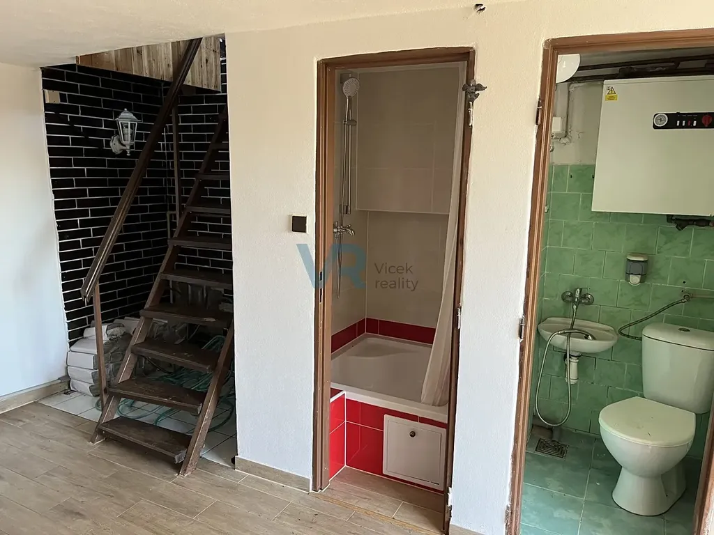 V suterénu se nachází, jedna místnost, splachovací WC, sprcha, elektrokotel a vodárna.