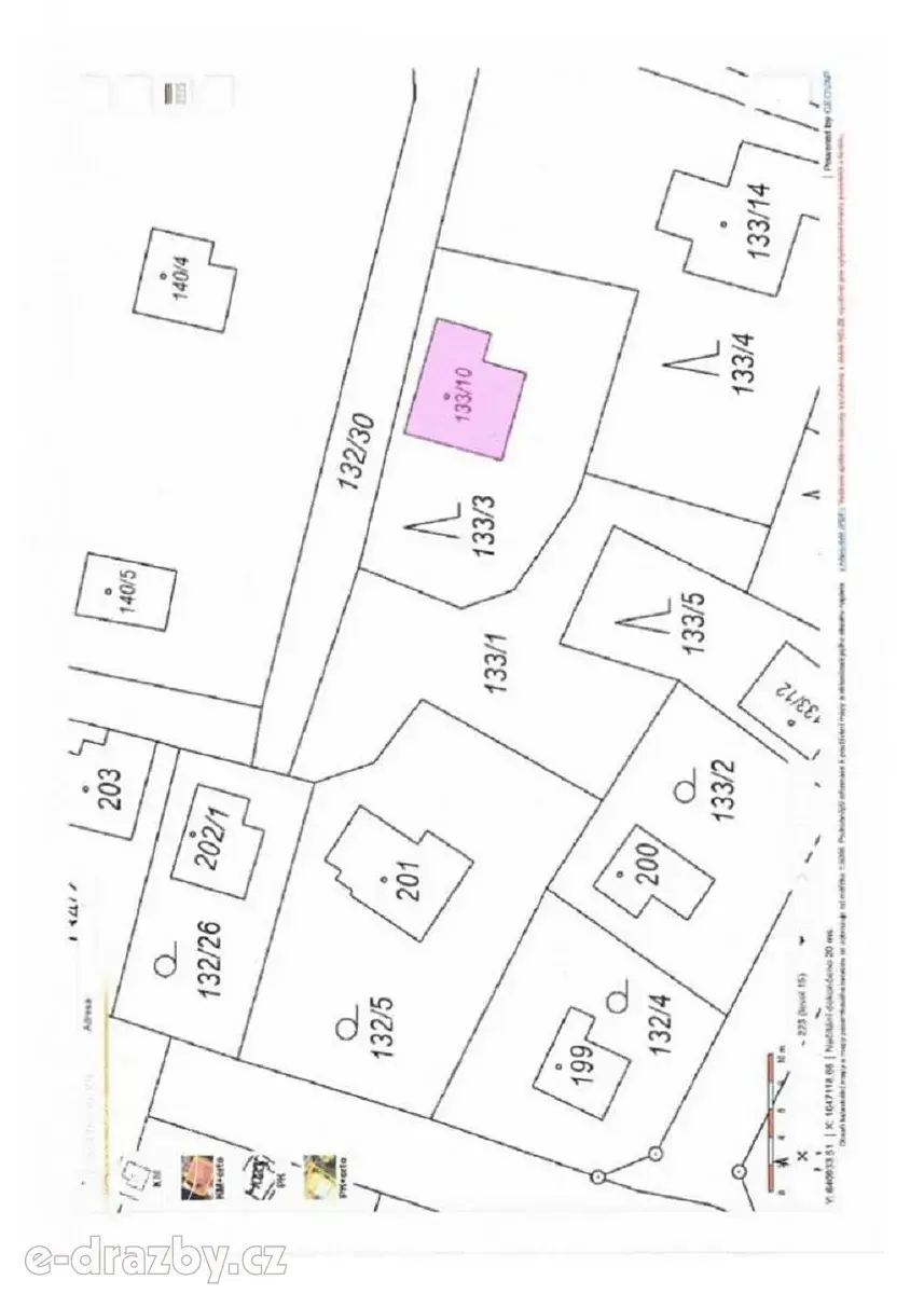Chata je postavena na pozemku jiných vlastníků a pozemek, který není zastavěný, ale užívaný společně s chatou je taktéž ve vlastnictví jiných vlastníků. Pozemky jsou neudržované, zarostlé náletovými křovinami, které znemožňují přístup do objektu. Znalec vychází z informací poskytnutých sousedkou paní Erbenovou, notářkou JUDr. Světlanou Čápovou, poskytnutých fotodokumentací z minulého období a místního šetření, které bylo provedeno dne 2.7.2025 znalcem, kde dle dostupnosti, bylo provedeno částečné zaměření. Do objektu nebylo možno vstoupit z důvodu náletu, který brání ve vstupu.