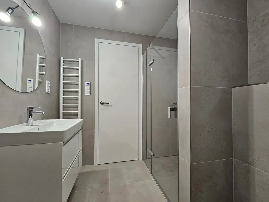 Byt se skládá z prostorné předsíně, koupelny s WC a sprchovým koutem walk-in, obývacího pokoje s kuch. linkou a ložnice. Okna jsou dřevěná s trojsklem. Podlahové krytiny tvoří vinyl a velkoformátová ker. dlažba v koupelně. Topení je podlahové. K dispozici je moderní kuch. linka s vestavěnými spotřebiči, stropní svítidla, podumyvadlová skříňka a nástěnné zrcadlo.