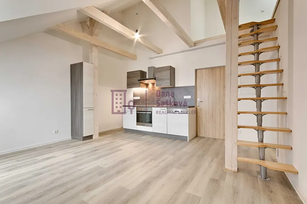 Pronájem bytu o dispozici 2+kk s galerií v podkroví třípodlažního bytového domu na adrese náměstí Míru, Jindřichův Hradec.