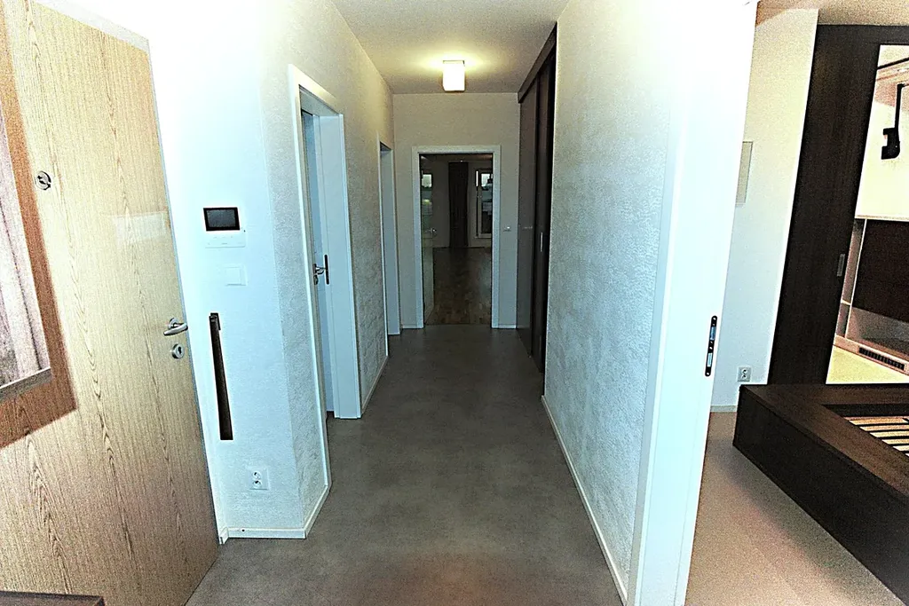 Nabízíme k dlouhodobému pronájmu krásný byt, dispozičně řešen jako 3+kk, 93 m2 + terasa velká 30 m2 a garážové stání v suterénu domu, v malém rezidenčním projektu. Obývající pokoj je prakticky propojen s kuchyní, z obývacího pokoje je vstup na ohromnou terasu (s přípojkou el., vody). Na terase je k dispozici kvalitní zahradní nábytek. Kuchyň je vybavena varnou deskou, el. troubou, vestavěnou chladničkou s mrazákem, myčkou nádobí, pračkou. Koupelna s velkorysým sprchovým koutem, dvěma umyvadly a WC (s umyvadlem a bidetovou sprchou) je zvlášť. Úložný prostor skvěle řeší komora v předsíni, velká vestavěná skříň, a především prostorná šatna v ložnici. Obě ložnice jsou samostatně přístupné. Byt se nachází ve 3.patře novostavby s výtahem. Pro rezidenty je k dispozici soukromá zahrada s dětským hřištěm. V místě je výborná dopravní dostupnost, metro C Kačerov (4 min.) nebo Budějovická v docházkové vzdálenosti od domu. Vzhledem k lokalitě, je zde veškerá vybavenost a také rozsáhle lesoparky. Tento byt, který nebyl dosud pronajímám je připraven pro prvního nájemníka.
