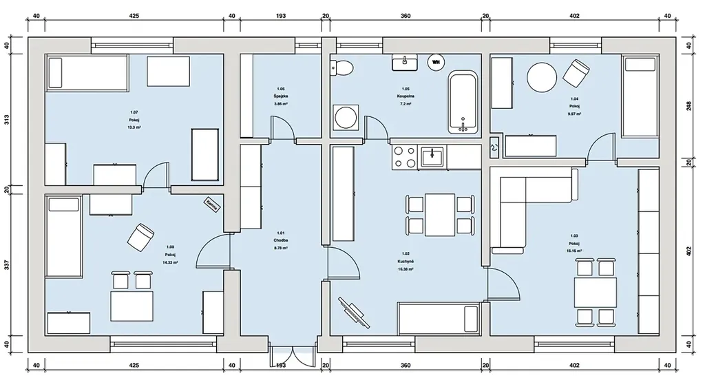 Ve výhradním zastoupení majitele Vám nabízím jednopodlažní dům se 4 pokoji a prostornou kuchyní, vstupní chodbou a koupelnou s WC. Nyní sloužil jako chalupa, ale dům lze užívat k trvalému bydlení. Dům je možné napojit na obecní vodovod (přípojka na hranici pozemku) a v domě je zavedena voda z vlastní studny. Dále je k dispozici elektřina i plyn. Topení v domě je momentálně jen lokální. Na pozemku se nachází ještě menší stavby, jako kolny, garáž a dílna a sklep. Prostorná půda je vhodná i pro vybudování obytného podkroví. Pozemek je slunný a mírně svažitý, rozdělen do dvou částí zahrady. Prostorný dům i zahrada mají velký potenciál.