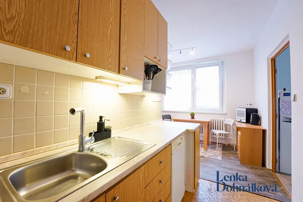 K bytu náleží zasklenná lodžie,sklep v přízemí bytového domu + společné prostory,parkování před domem.