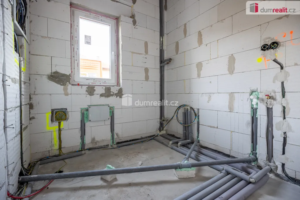 Cena zahrnuje dům v podobě - veškeré technické zázemí (topení, ohřev vody - bojler, rozvedná elektřina a voda, příprava na bazén, solární panely), vnitřní omítky, betonové podlahy, oplocení zahrady.