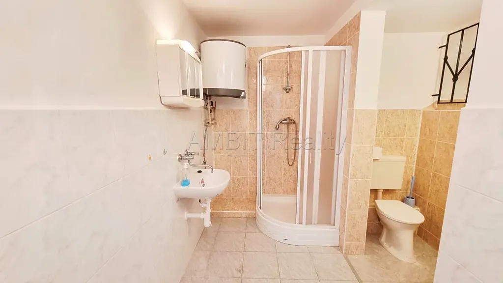 Tento nebytový prostor, vhodný například jako výrobna nebo výdejna občerstvení, provoz pekařské či cukrářské výroby, výdejna zboží pro e-shopy, kancelář, vzorkovna, jednačka a pod., sestává z velké místnosti 53 m2, samostatné kuchyně, koupelny s umyvadlem, sprchovým koutem, WC a vstupní chodby. Kromě vstupu přes vstupní předsíň, má prostor i přímý vstup z ulice-objektu. Podlahy jsou v celém prostoru dlažbové.