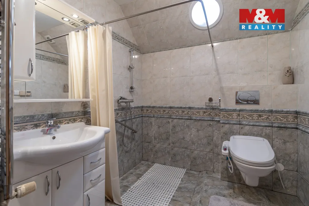 Dovolujeme si Vám nabídnout rodinný dům 7+1, částečně podsklepený, s vytápěnou prosklenou zimní zahradou a dvougaráží v žádané lokalitě Ostrava – Stará Bělá, ulice Na Zámčiskách. Zastavěná plocha a nádvoří činí 166 m², celková výměra pozemku je 1 268 m². Dům má sedlovou střechu, v podkroví se nachází úložný prostor. V prvním patře jsou čtyři pokoje, koupelna s vanou, samostatné WC, technická místnost a další dvě místnosti s vestavěnými šatnami, které lze využít dle vlastního uvážení. V přízemí se nachází vstupní hala, samostatné WC, pracovna, vytápěná prosklená zimní zahrada, pokoj s koupelnou a WC, dále kuchyň se spížírnou a jídelním koutem, obývací pokoj se vstupem na terasu a zahradu. Vytápění a ohřev vody zajišťuje kondenzační plynový kotel, dům je vybaven alarmem. Součástí pozemku je epesní okrasná japonská zahrada, vzrostlé stromy a keře, vodní jezírko a zastřešená dřevěná dvougaráž s elektrickým ovládáním. Energetická náročnost budovy se momentálně zpracovává.