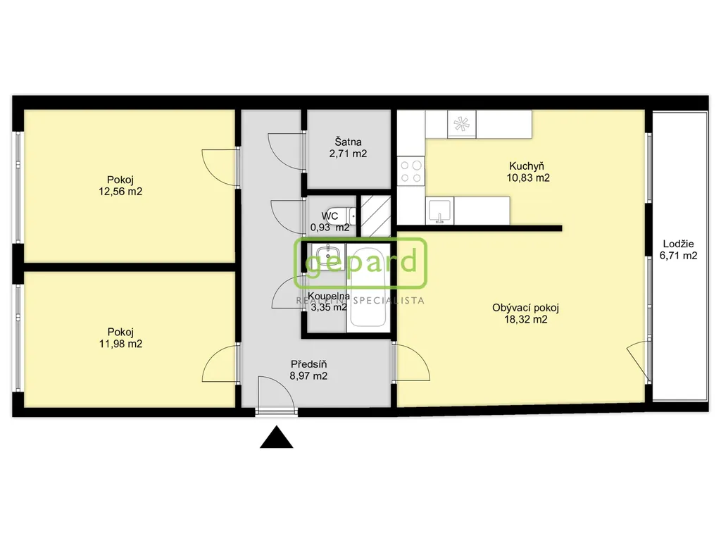 Byt je orientovaný na jihovýchod, takže je krásně světlý a slunný. Lodžie jsou zasklené, k bytu patří sklep (3,3 m²) a v domě najdete i kolárnu.