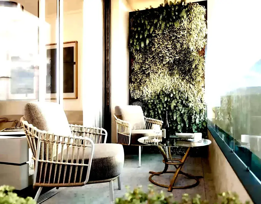 Obyvatelé mohou využívat společnou střešní terasu s vyhřívaným skleněným bazénem, ideální pro odpočinek po celý rok.