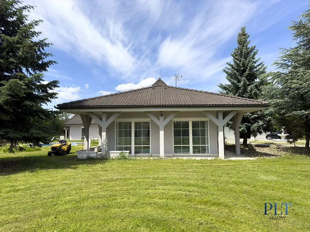 Reprezentativní vstupní hala, prostorný obývací pokoj s krbem, jídelna, plně vybavená kuchyně se spíží, dva samostatné pokoje, wellness část (vnitřní bazén, sauna, šatna a technické zázemí), přímý vstup na terasu, venkovní bazén a zahradu.