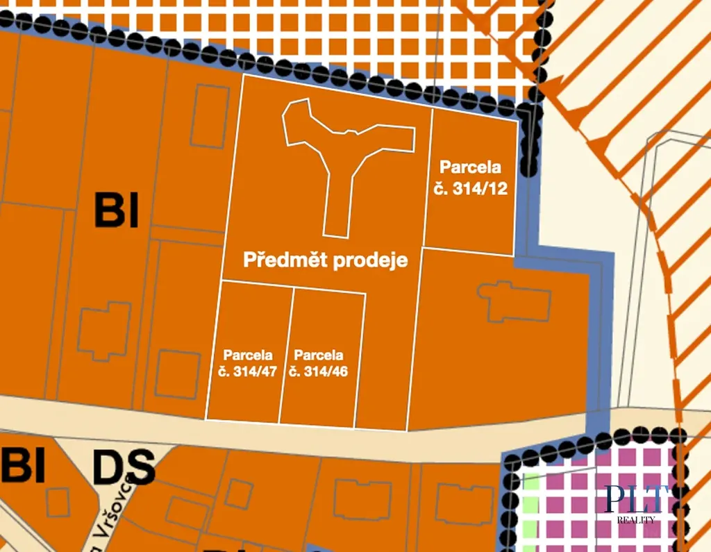 Jižně od hlavního domu se nachází další dvě parcely – č. 314/46 a č. 314/47, každá o velikosti 852 m². Tyto pozemky nabízejí široké možnosti využití: kromě klasické výstavby rodinných domů mohou sloužit také jako prostor pro soukromé sportovní nebo vzdělávací zařízení – např. mateřskou školu, jezdecký areál, tenisový kurt či golfové odpaliště. Vše v souladu s aktuálním územním plánem.