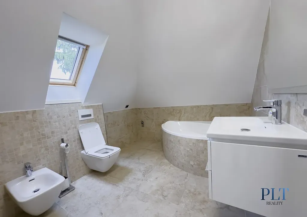 Samostatný byt 3+kk je situován v podkroví nad garáží ve východním křídle domu a nabízí plochu 79 m². Díky oddělenému vstupu je ideální například pro hosty nebo vícegenerační bydlení.