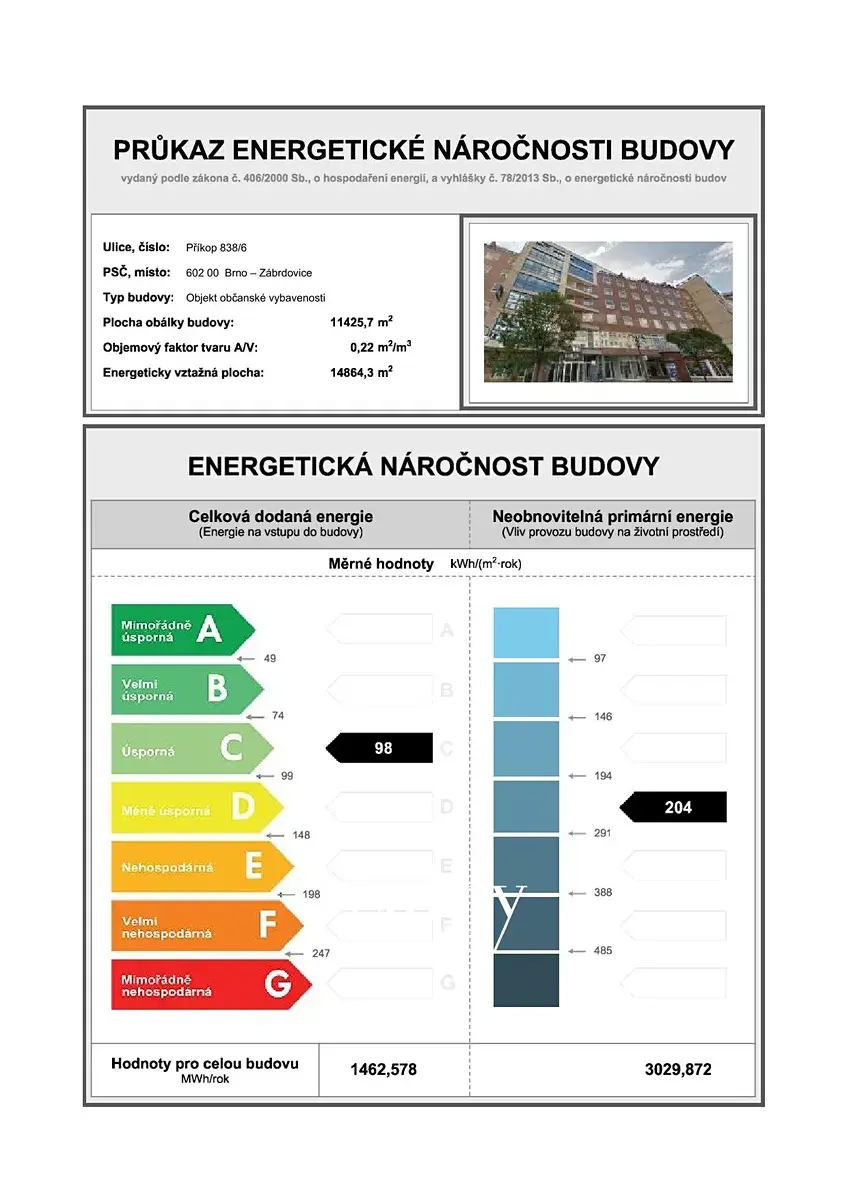 Průkaz energetické náročnosti budovy (PENB) má hodnotu C – úsporná.
